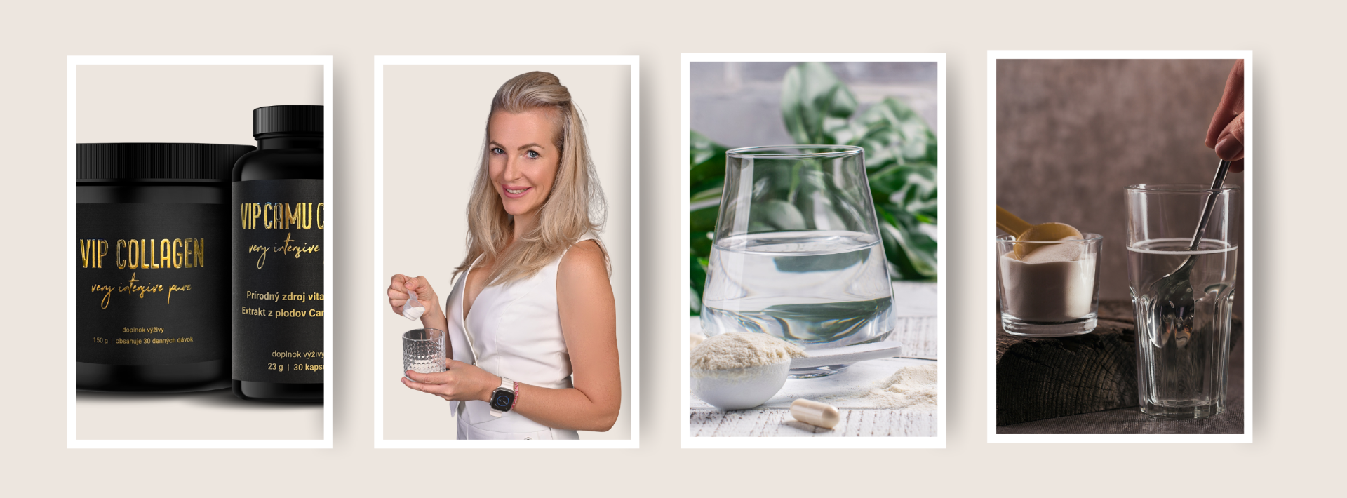 "Každý detail našej VIP Collagenovej kúry je premyslený do poslednej molekuly. Od výberu klinicky overených bioaktívnych kolagénových peptidov Verisol® až po 100% čistý výťažok z Camu Camu. Všetko je spracované tak, aby to prinášalo reálne a viditeľné výsledky a pocit zo seba, ktorý si zamilujete."